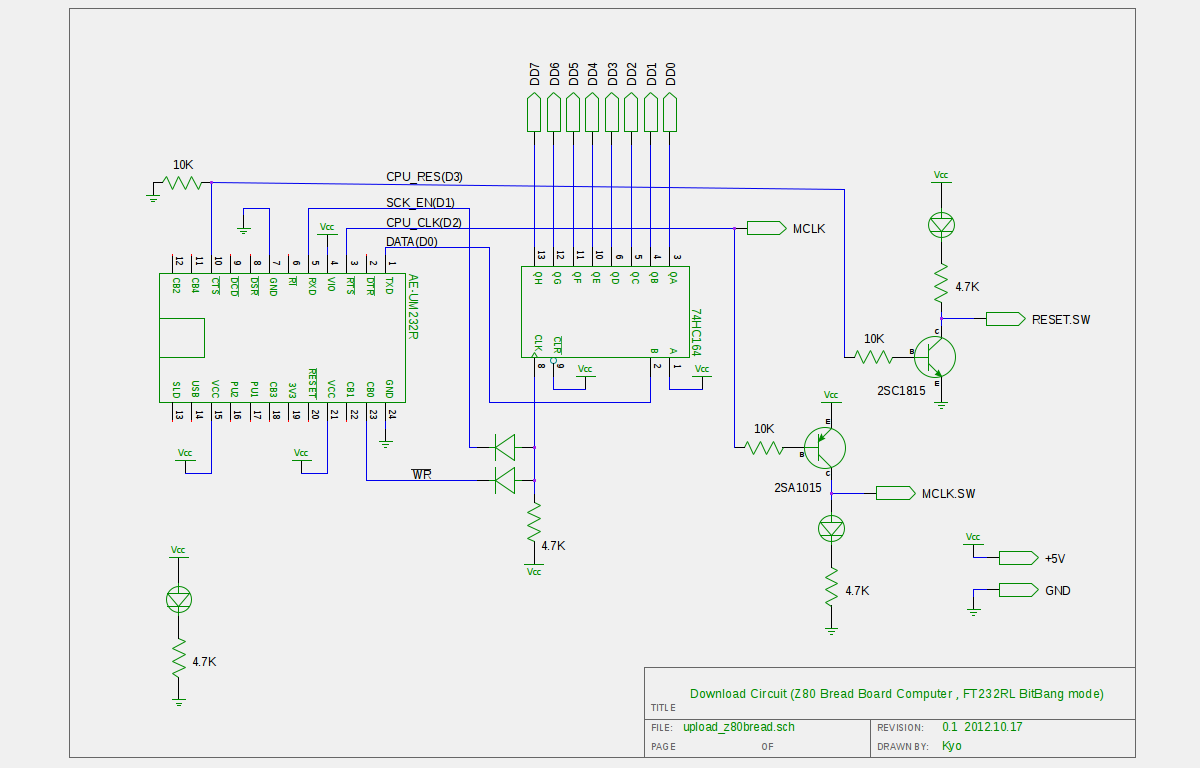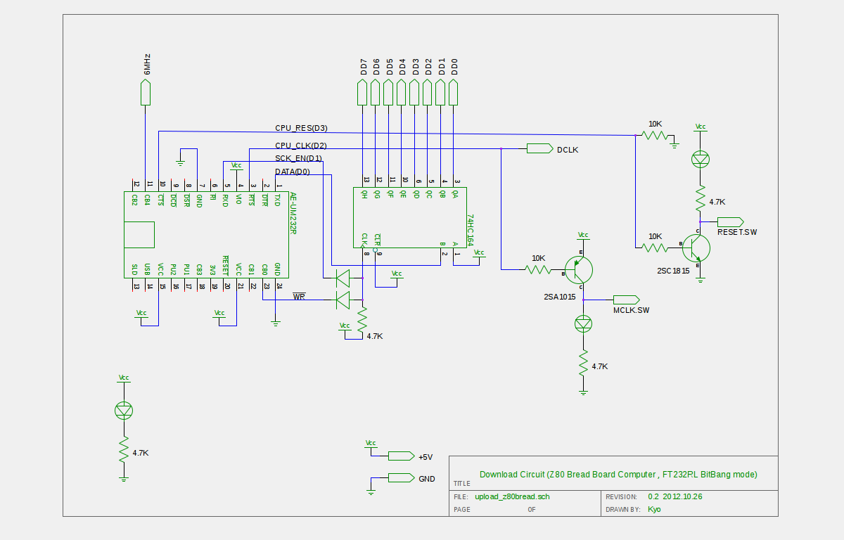 ブレッドボードZ80マイコンのダウンロード回路の回路図を作りました。